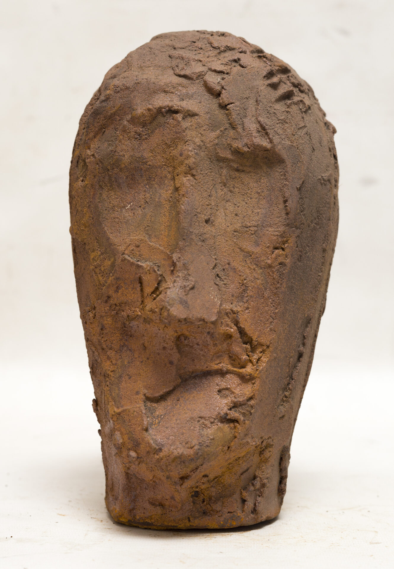This head, without discernible features, seems to be listening to its own inner echo. The subtly textured surface conveys an intimate resonance, a dialogue with oneself.