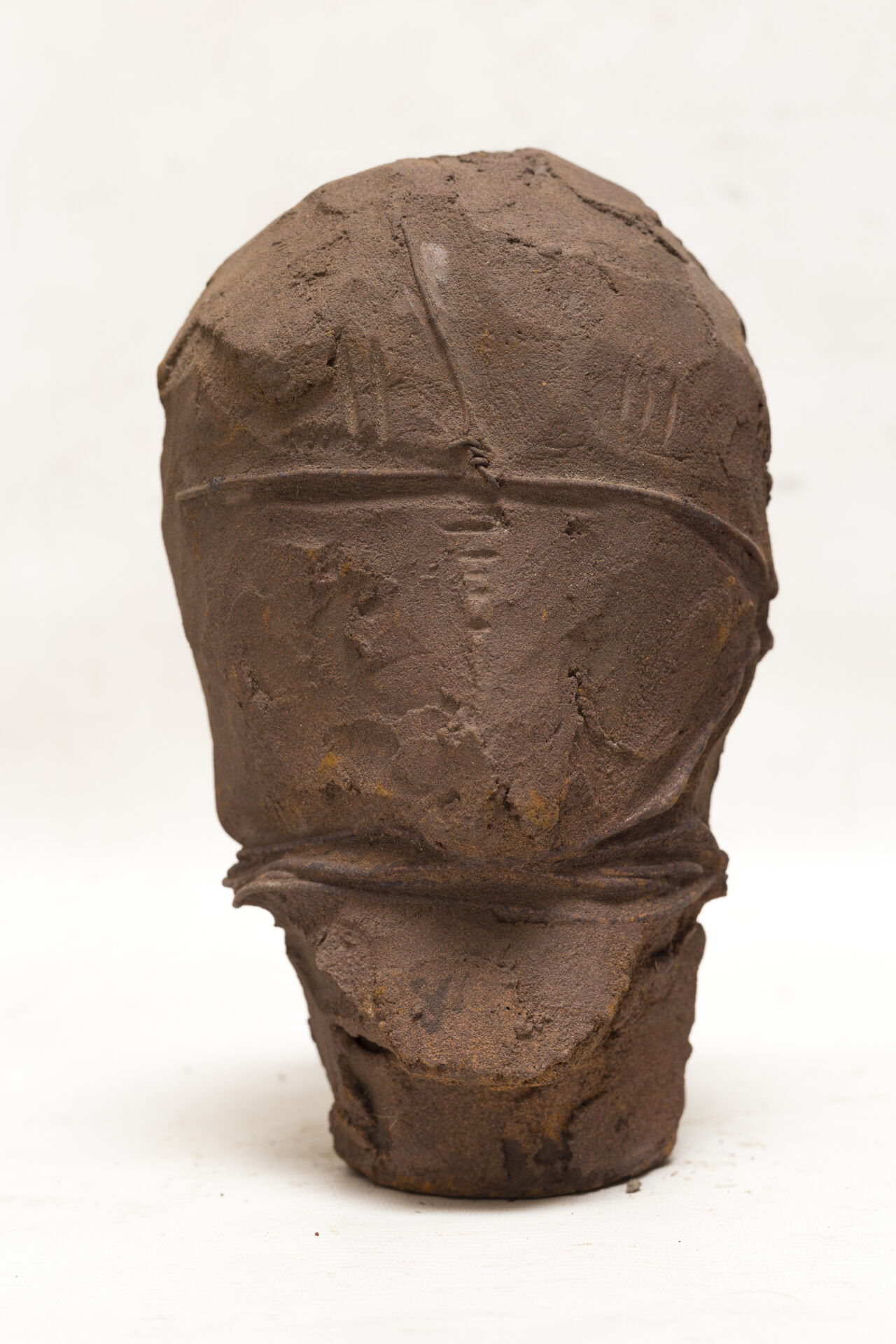 The “100 Heads WITHOUT Faces” collection brings together one hundred unique sculptures, handcrafted from terracotta and rusted metal. These works embody the invisible faces of our collective history: undocumented migrants drowned at sea, victims of slavery, those forgotten in genocides, the anonymous whose memories are fading.