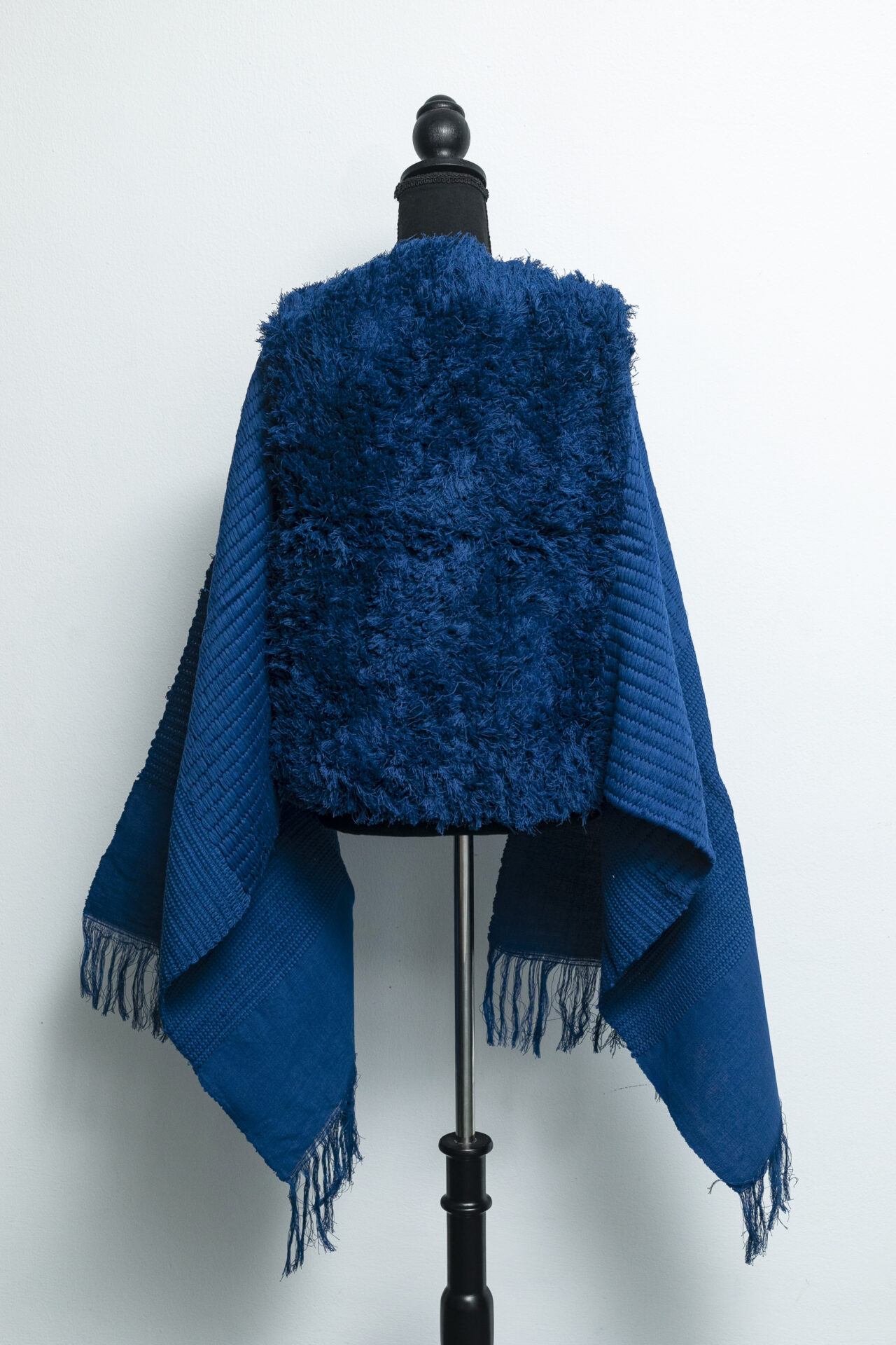 The “CENDRES – Deep Blue” shawl explores the encounter between matter and light in their most meditative form. Entirely handwoven in artisanal cotton, it reveals a dense, vibrant, and soothing indigo-blue hue.